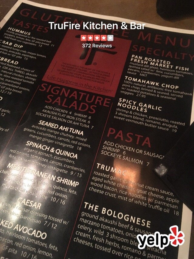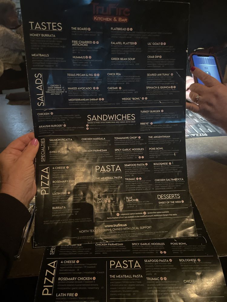 TruFire is a New American restaurant located in Frisco, TX, offering a wide range of amenities such as reservation options, delivery, vegan and vegetarian choices, and more. The menu features creative salads like the Naked Avocado and Seared Ahi Tuna, as well as tantalizing tastes like Crab Dip and FireCharred Artichoke. The addition of unique salad add-ons like Ahi Tuna and Gulf Shrimp enhances the dining experience. With a casual atmosphere, full bar, and outdoor seating, TruFire is perfect for any occasion, especially on Thursday, Friday, and Saturday nights. The inclusion of details like heated outdoor seating, TV, and catering services make TruFire a versatile and welcoming dining destination. Offering a mix of innovative dishes and classic favorites, TruFire is sure to satisfy food enthusiasts of all kinds.